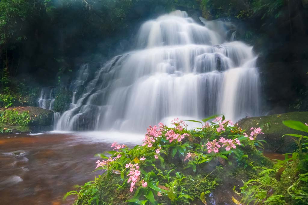 中部ピッサヌローク県プーヒンロンクラー国立公園内にあるマンデーン滝で蘭の一種「ウアン・リンマンコーン(学名:ハベナリア・ロドケイラ)」が開花した。例年8月頃が開花する時期とされ、緑に囲まれた滝を背景に鮮やかなピンク色の花が幻想的に咲き乱れる。
