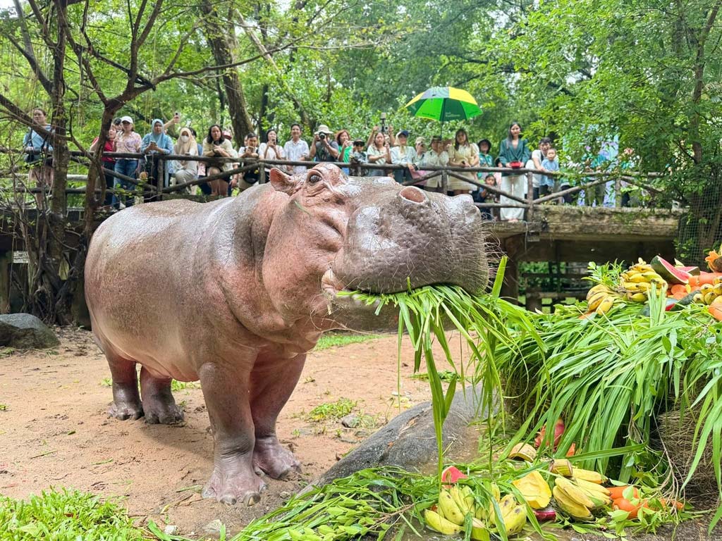 チョンブリー県にあるカオキアオ動物園で9月8日、同園のアイドルカバ「メーマリ」が60歳の誕生日を迎えた。メーマリは1967年にオランダの動物園からタイに贈られ、これまで14頭の子どもを出産。タイ国内では“最年長カバ”として多くのファンに愛されている。
