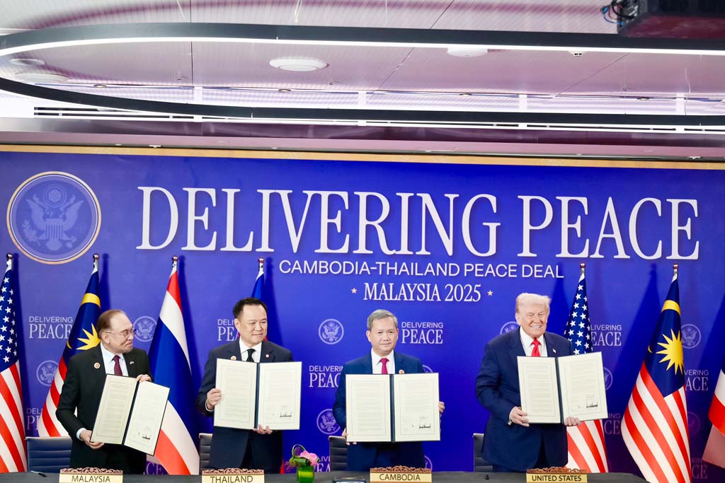 10月26日、マレーシアで開催された東南アジア諸国連合(ASEAN)首脳会議で、タイとカンボジアの和平協定の署名式が行われた。マレーシアのアンワル首相とアメリカのトランプ大統領が立ち会い、今後は立ち会い国監視の元、3段階にわけて武器の撤収を行っていくという。