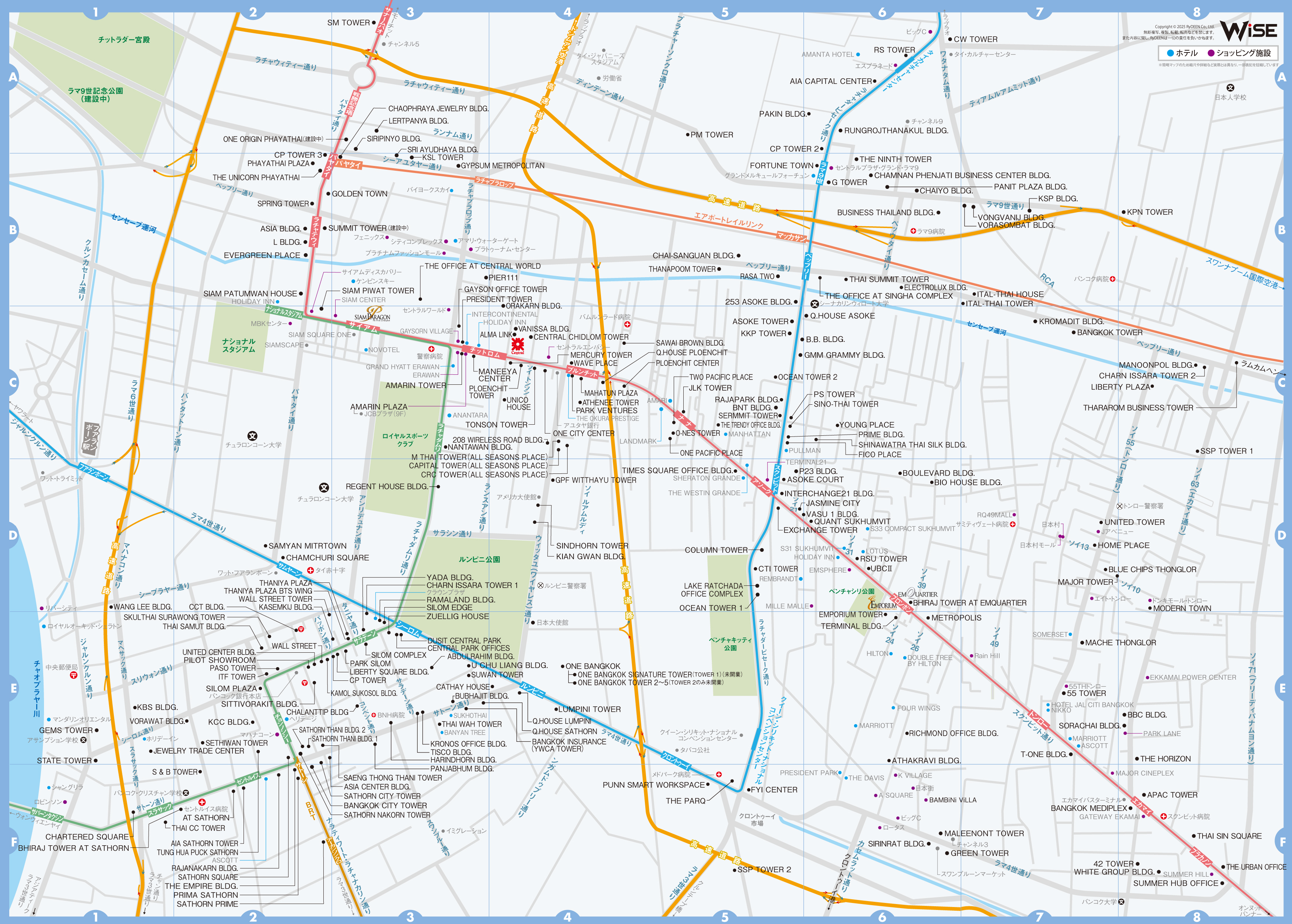 そこでバンコク中心部にあるオフィスビルの分布がわかる地図を作成しました。ぜひご活用ください!