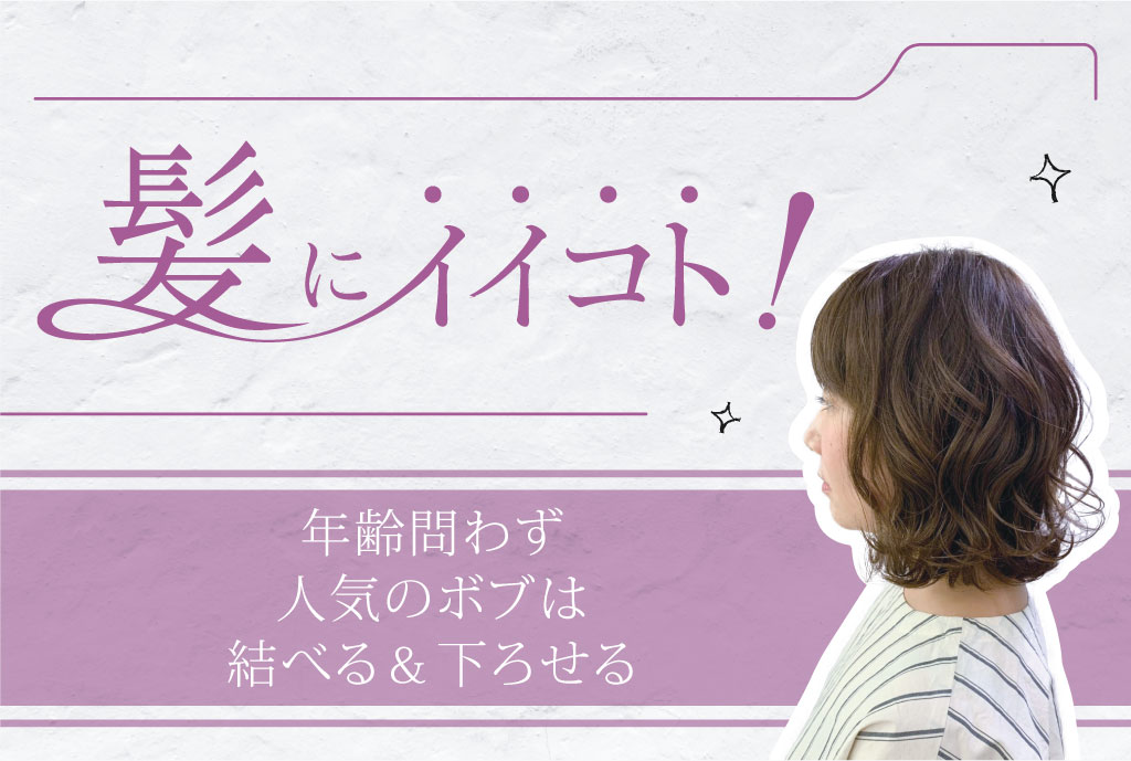 カット1,150B カラー2,200B子どもから大人まで、幅広く”ハマる”ミディアムボブは人気のスタイルの一つ。邪魔な時は結べて、下ろしてもスッキリ見えるバランスを重視します。 -