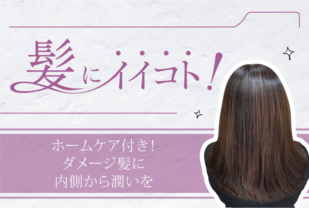 1,400B〜紫外線に加えて、ドライヤーやヘアアイロンの熱によるダメージを内側からしっかりと補修し、潤いキープ! ホームケア付きなのも嬉しいポイントです♪ -