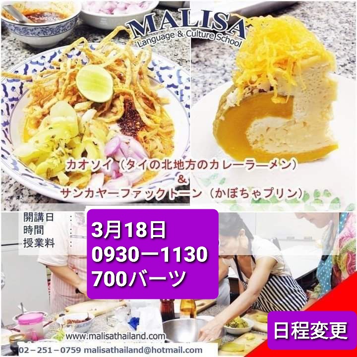 広告掲載料金についてはこちら 2021.03.5 語学・習い事 3月18日タイ料理生徒募集中です 今回はカオソイとカボチャを使ったデザートです。是非ともご参加くださいませ Tel 0890107823 E-mail malisathailand@hotmail.com URL http://www.malisathailand.com/ 投稿者 マリサスクール