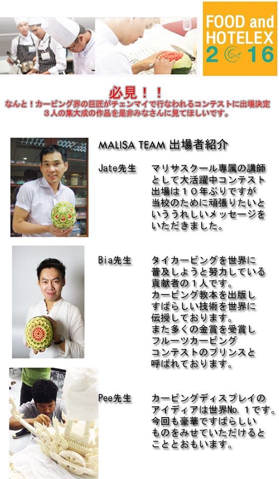 広告掲載料金についてはこちら 2016.12.16 お知らせ チェンマイで行われるカービング大会 チェンマイ在住の方は必見です。カービング界の巨匠がチェンマイでご披露します。このチャンスをお見逃しなく! Tel 022510758 E-mail malisathailand@hotmail.com URL http://www.malisathailand.com/ 投稿者 マリサスクール