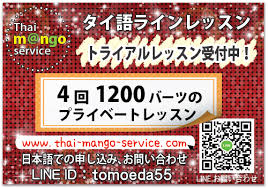 ラインで赴任前の日本で日本人講師がタイ語個人レッスンを行っていて、2時間の時差にも対応し早朝から夜9時まで受講できます。ワンレッスン30分なので出勤前や空き時間にラインで気軽に学べ、全く初めてでもスタートアッププログラムを使い赴任される時には日常生活での会話は可能です。赴任直後の駐在員の方も毎日受講されれば約3か月で日常会話とタイ文字が読めます。トライアルレッスンも行っています。