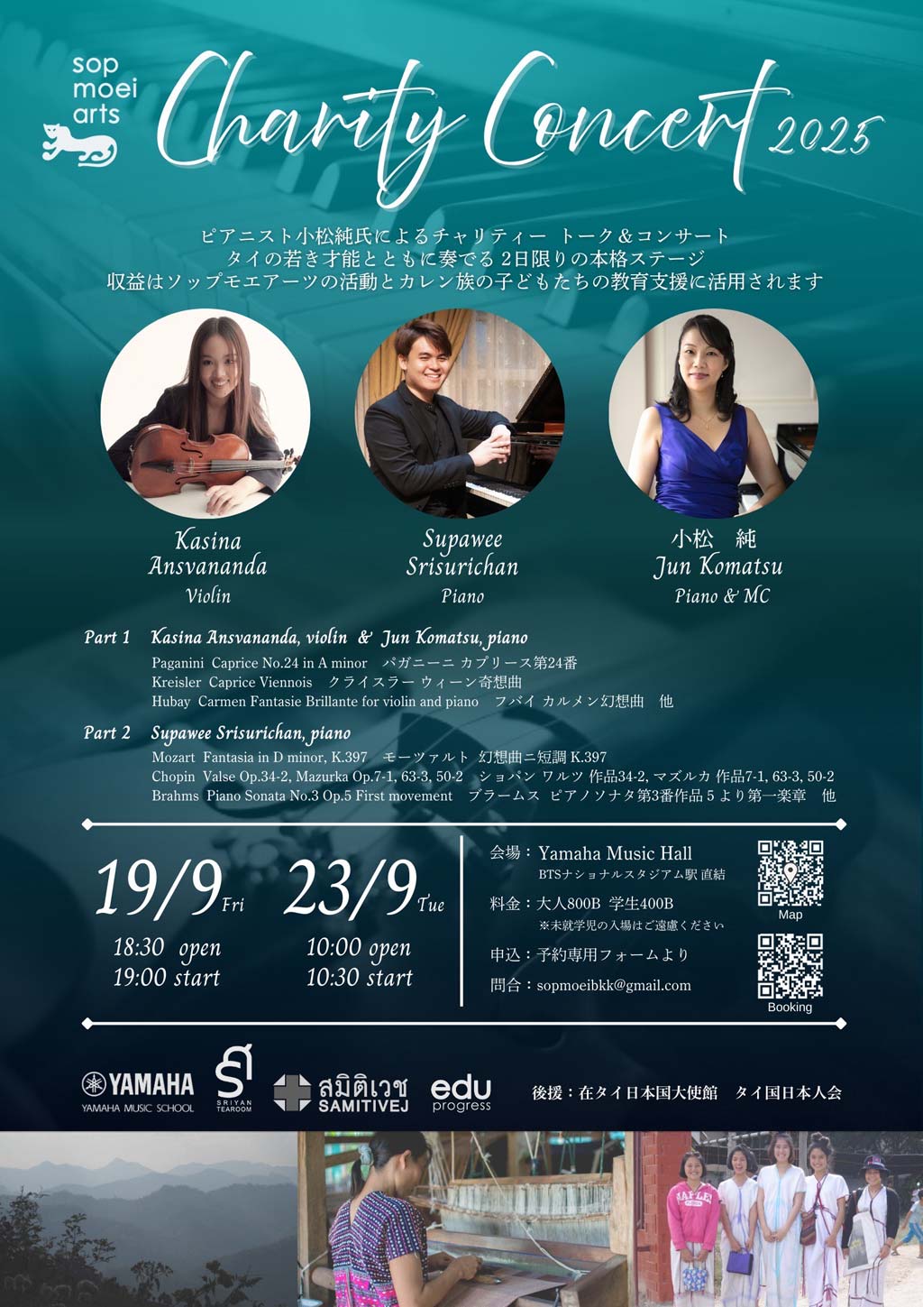 音楽を楽しみながら、山岳少数民族の子どもたちを支援するチャリティーにもつながります。ぜひご家族やお友達と心豊かなひとときを過ごしにいらしてください。