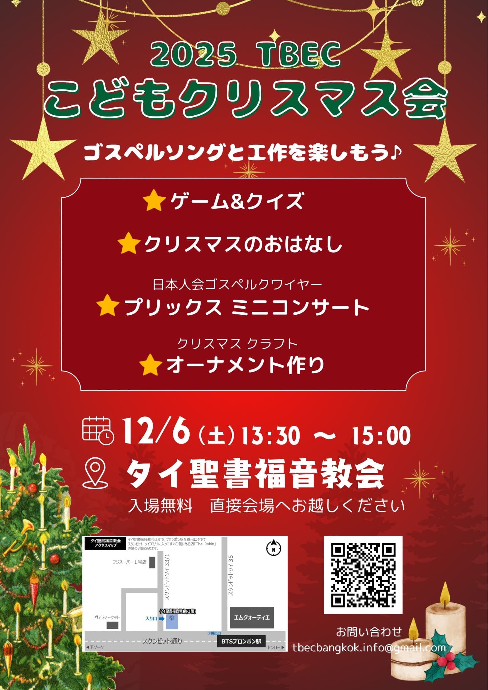 ゴスペルコンサート、クリスマスのお話、クイズ&ゲーム、クリスマスオーナメント作り など盛りだくさん!