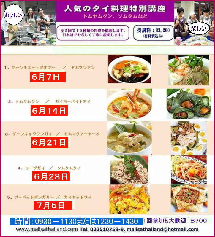広告掲載料金についてはこちら 2017.05.18 語学・習い事 タイ料理教室生徒募集中 おいしい 楽しいと評判のマリサスクールでは生徒募集をしております 1回の参加もだいじょうぶ 現在キャンペーン中でコース授業をお支払いの方は200バーツのクーポン券を プレゼント中です Tel 022510758 E-mail malisathailand@hotmail.com URL http://www.malisathailand.com/ 投稿者 マリサスクール