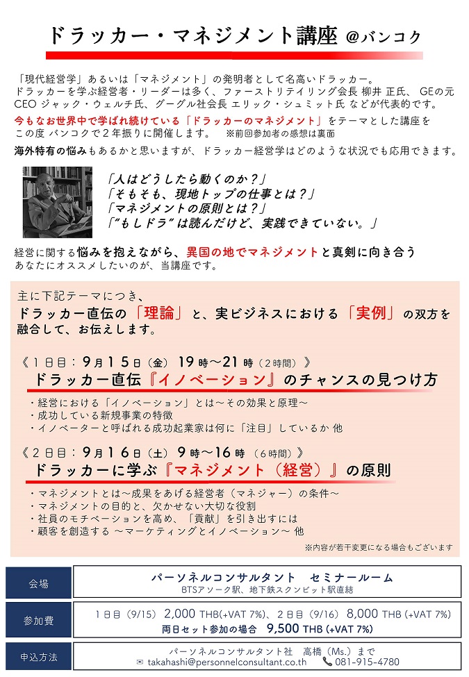 世界中の経営者・リーダーが学ぶドラッカー・マネジメントの「原則」と「実践のヒント」が学べる絶好の機会です
