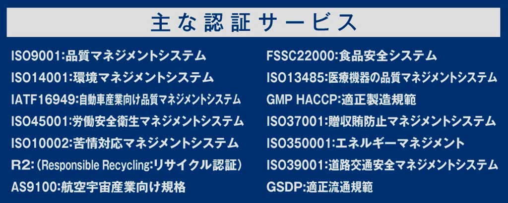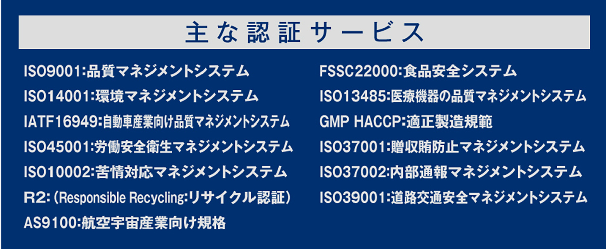 世界に拠点を持つISO審査登録機関である同社がタイに進出したのは2003年。以来、多くの在タイ日系企業に対し、ISO認証の取得支援とその有効活用に向けたサポートを提供してきた。品質や環境に加え、労働安全衛生、統合リスク管理、BCP(事業継続プログラム)、カーボンニュートラル、オフセット、コンプライアンス経営など、一層複雑化・多様化するマネジメントシステムへの対応に貢献している。