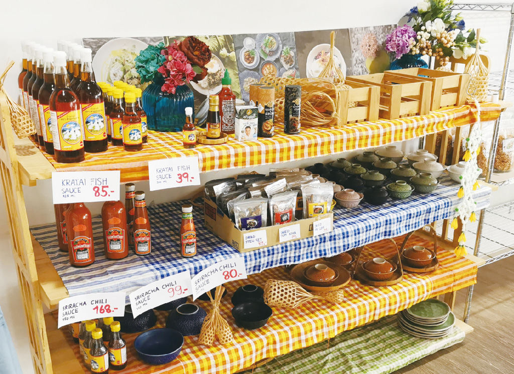 店頭ではナリー・シェフが監修したスープスパイスや調味料、ソースなどの商品を販売。なかでもスタッフのおすすめは「タイスープスパイスセット」。必要な食材とスープセットがあれば、自宅でも気軽に本格タイ料理が調理できる。ぜひ、試していただきたい。