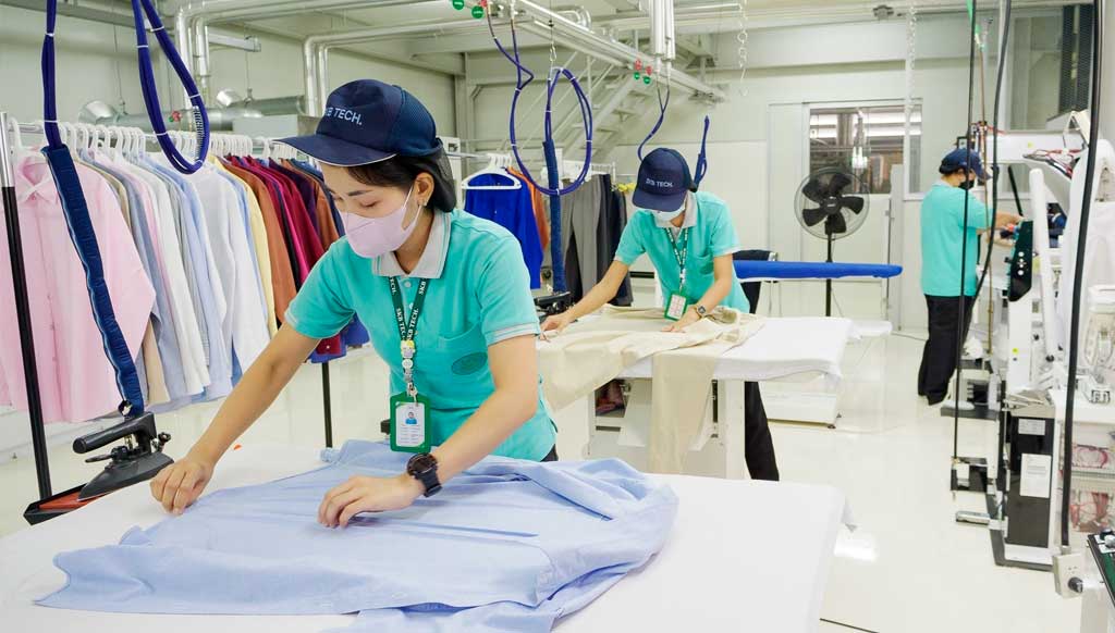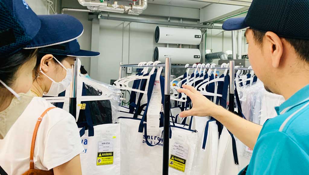日本品質の仕上がりを追求する同店の工場には、経験豊富な日本人技術者が常駐・管理・指導を徹底し、日本トップレベルの最新マシーンを導入。洗浄水には軟水を使用し、預かった衣類は全品無料で「除菌・抗菌」加工を施すため、衛生面でも安心だ。