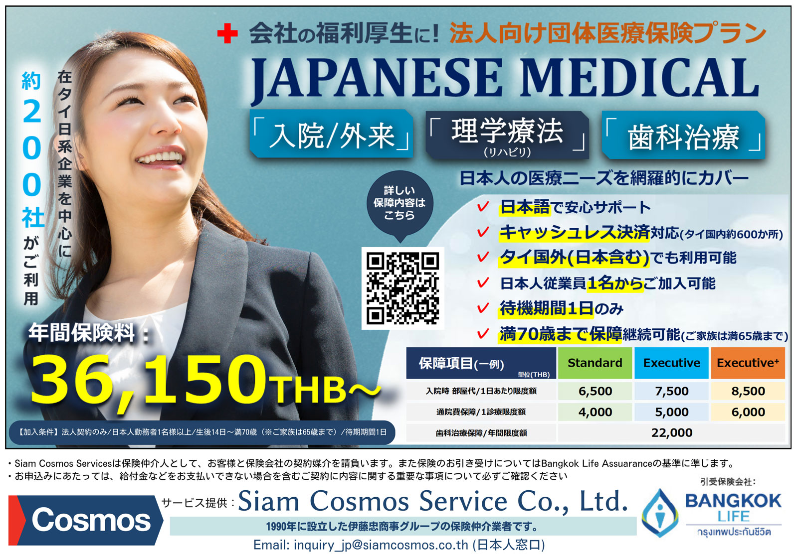 2005年にサービスを開始した、タイで生活する日本人向けの団体医療保険(*法人契約限定)