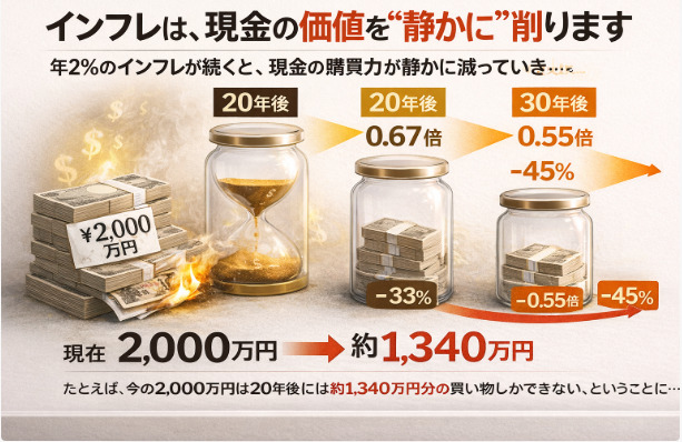 - インフレは「理論」ではなく、現金の購買力を静かに削ります