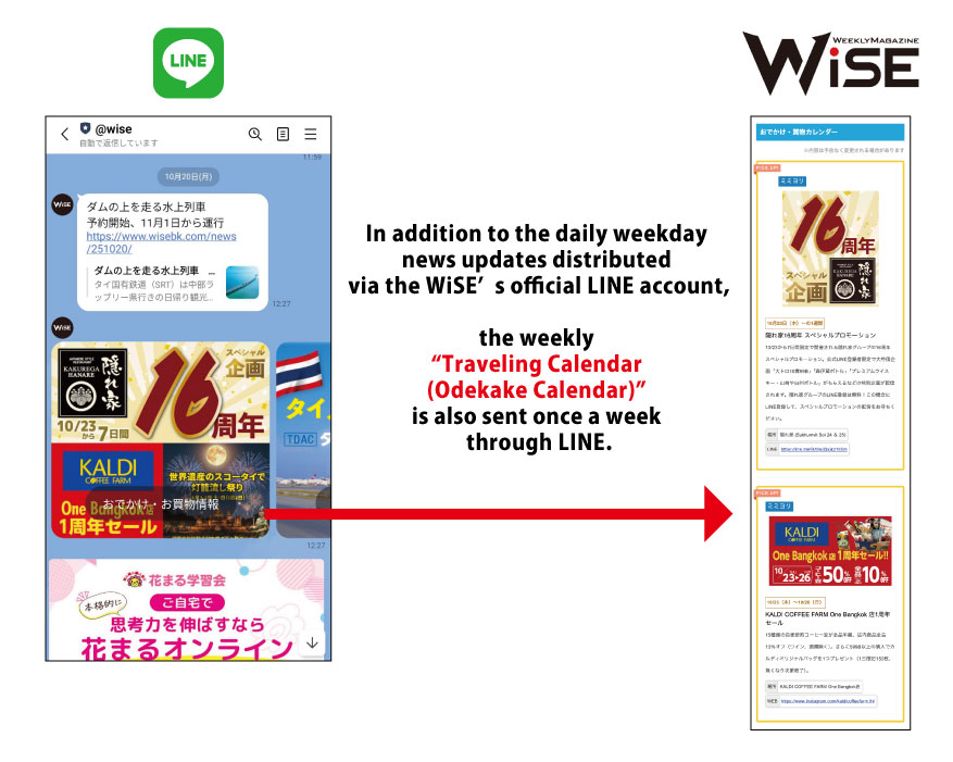“WEEKLY WiSE” is the only Japanese weekly free newspaper in Thailand that has been published since 2003. It targets the 80,000 Japanese people living in Thailand and is read by many Japanese people as an information magazine that supports life in Thailand.
