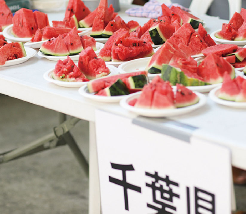 - 今年もスイカ割りを予定しています。割ったスイカを使ったフルーツポンチや、果物を使ったスイーツを用意します。今回は、千葉県産の果物を扱っている企業さんのご協力で、日本産の果物を使用したメロンシャーベットやイチゴのケーキも提供します。
