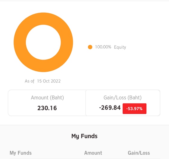 私自身がタイの投資信託を購入したことがなかったので、試しに500THB分を購入してみました。購入したのは2021年8月21日で世界株に連動する商品です。