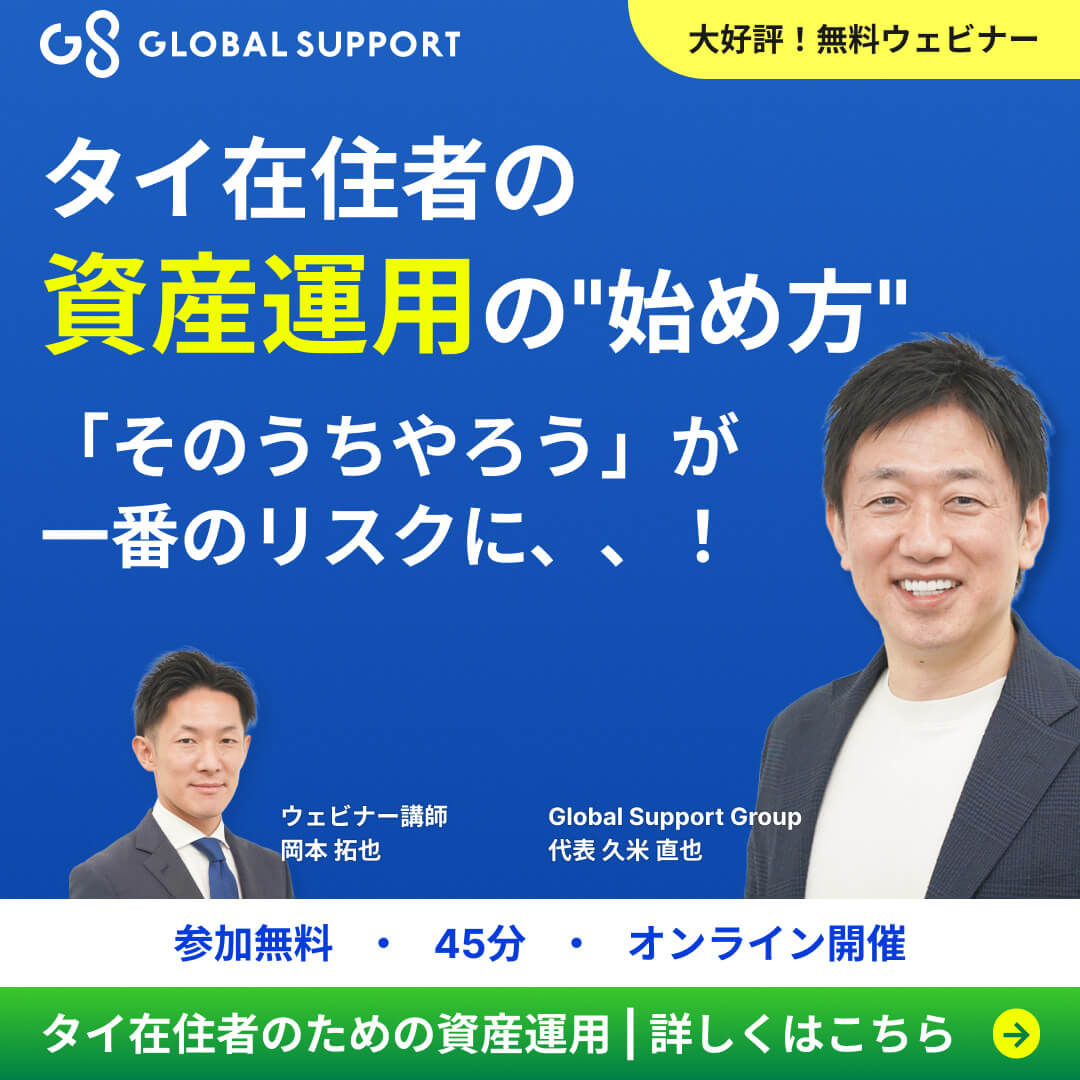 Global Support (Thailand) Co.,Ltd.は、タイ駐在・在住日本人の方に対して資産運用のサポートをしております。