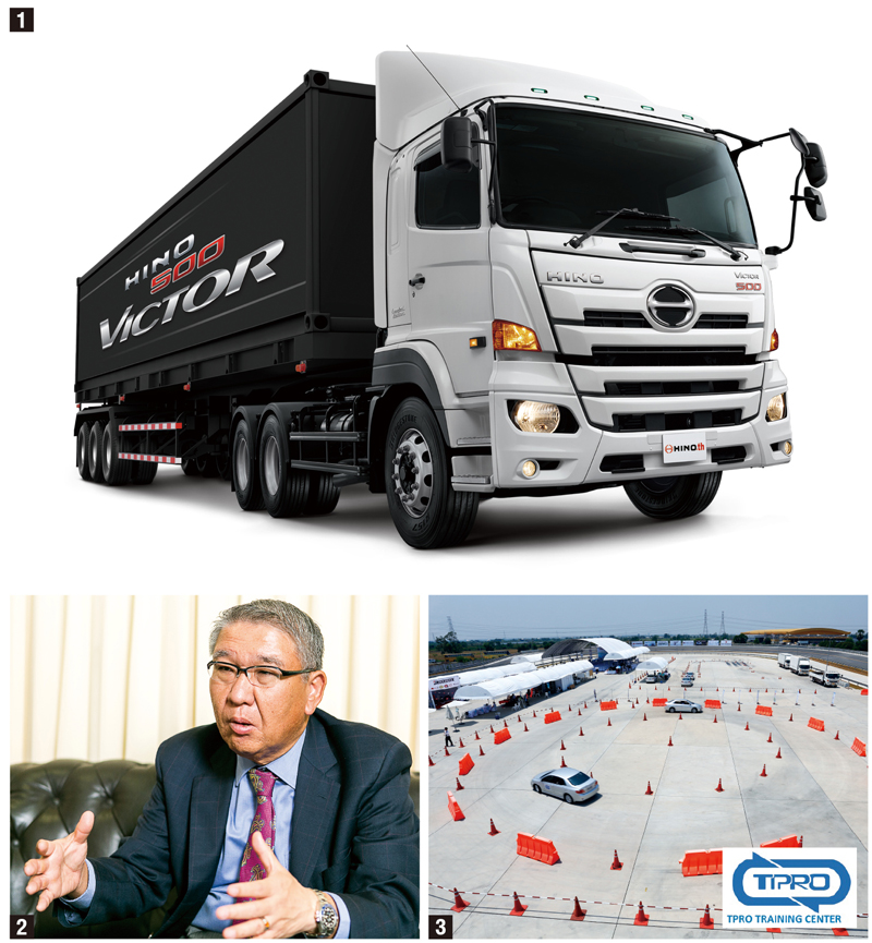 「大事なのは性能がいいこと、壊れないこと。そして、壊れた後の対応が迅速なこと。弊社はレスキュー隊を各拠点に備え、24時間コールセンターが稼働しています。緊急時の体制も万全です。販売後に、いかにお客様の役に立つサービスを提供できるかが、業界トップを誇る“日野ブランド”を維持できる秘訣です」と中村社長。商品はもちろん、定期メンテナンスやGPS機能「iQsan(いっきゅうさん)」搭載、経年劣化した車のエンジンを蘇らせるサービスなど、販売後の多様な“トータルサポート活動”が、日野が選ばれる由縁でもある。そのひとつが、2014年から始めた「日野スマートドライバートレーニング(HSD)」研修だ。運転技術の向上を目指し、チャチュンサオのトレーニング場にて安全、省燃費運転、夜間走行、日常点検など正しい技術を学べる機会を無料で提供(スタッフを派遣し、地方でも開催可能)。来年はフォークリフト研修なども加わる予定だという。