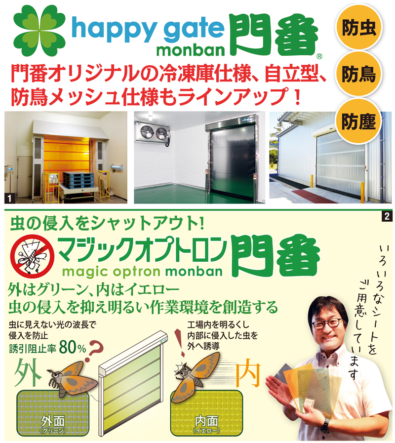 工場や倉庫の開口部に設置する高速シートシャッター。空調管理、防塵・防風には不可欠な存在として、日本での普及率は高いものの、タイはこれから。そんな中、シートシャッター「門番」を日本で初めて開発・販売した業界のパイオニア「小松電機産業」がタイで駐在事務所を設立(2016年8月)。ものづくり大国タイで、旋風を巻き起こしている。「これまで代理店を通して販売してきましたが、メーカー責任を果たすためにも駐在事務所が必要と判断しました」と話すのは、同社ASEAN担当の先久(せんきゅう)雅人氏。業界では「門番」を知る人は多いだろう。それまで、空間を遮り、防犯要素のみだったシャッターの常識を変え、「中小企業センター賞」「ニュービジネス大賞」「ものづくり日本大賞優秀賞」などを受賞。シャッター・ドア業界で初のエコマーク認定も受けた。品質は折り紙つきで、「業界最速の上昇速度」「高気密」「高い防虫・防塵効果」に加え、特殊用途向けとして「冷凍庫仕様」「防爆仕様」もラインナップ。コンパクトかつ短時間施工と、多くの点でパイオニアのノウハウが生かされている。「日本とタイでは環境が異なるので、多種多様なシートを用意しています」(同氏)。今後、タイでは東部経済回廊(EEC)構想に基づき、医療、航空、電気自動車といった高付加価値産業の集積が図られる。そうなれば、自ずと精密部品・製品が増え、クリーンルームでの製造・保管・管理が必要とされ、同社のシートシャッター需要も増加するというわけだ。まさに、時代のニーズに合致した戦略。