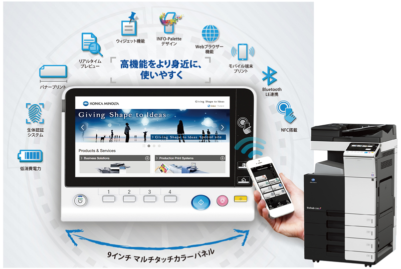 - 業界では、“カラーのコニカミノルタ”と評される強みを持つ。単純な印刷品質だけでは差が出にくい領域で、プロから評価を得るのは、裏打ちされた技術力があるからこそ。担保された高い信頼性を誇る製品の次なる一手が「高機能をより身近にすること」。タイ語化された大型9インチマルチタッチカラーパネル(bizhubシリーズ)で、シンプルかつ、快適な操作性を実現した