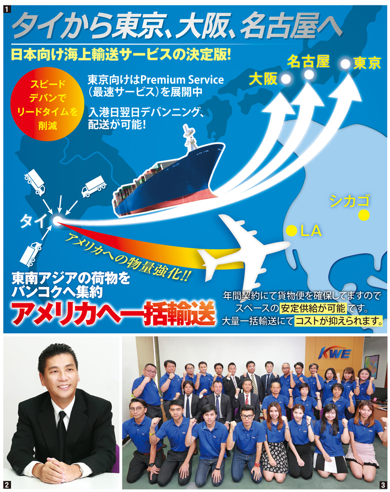 2017年、総合国際物流大手の“近鉄エクスプレス タイランド”から目が離せない。これまで、タイでは現地物流企業のTKKロジスティクス(2011年)と統合。KWEグループとしては、シンガポールを拠点に世界60ヵ国で展開するAPLロジスティクス(APLL)を15年にグループ化した。これにより、ASEAN陸送、海上フォワーディングでの強化を図り、盤石な基盤体制を構築してきた。