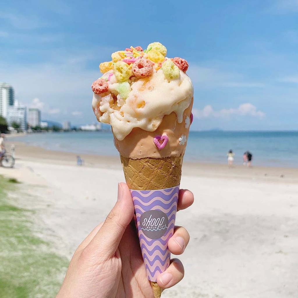 星やハートなどをトッピングして、ビーチをバックに写真を撮るのがマスト!ホアヒンにも支店があります。