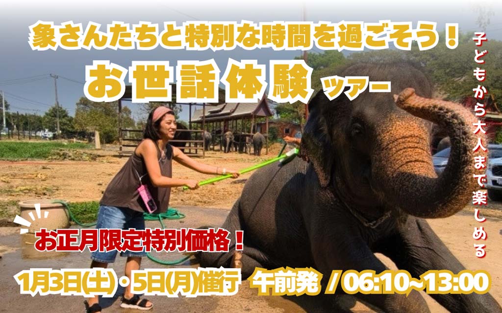 お正月特別価格!子どもも大人も楽しめる象さんのお世話体験ツアー♪