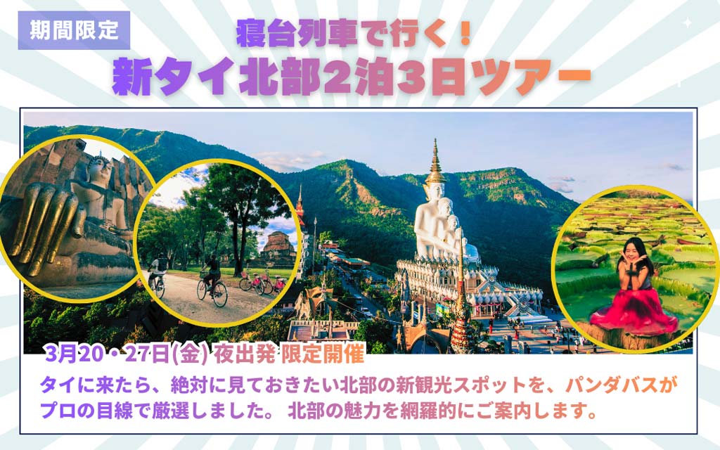 期間限定!寝台列車で行く!新タイ北部2泊3日ツアー