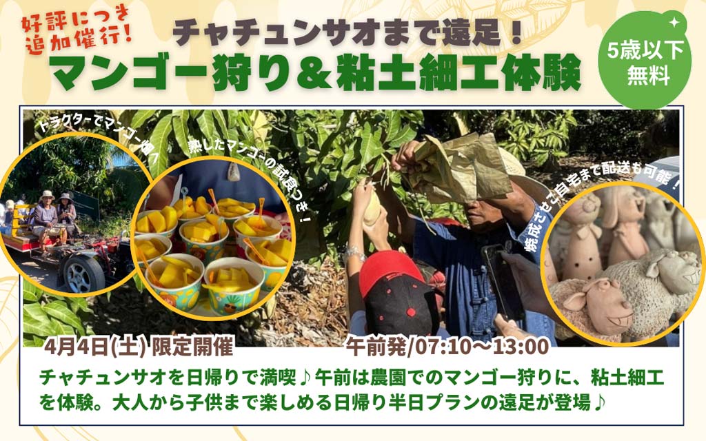 期間限定!チャチュンサオまで遠足!マンゴー狩り&粘土細工体験