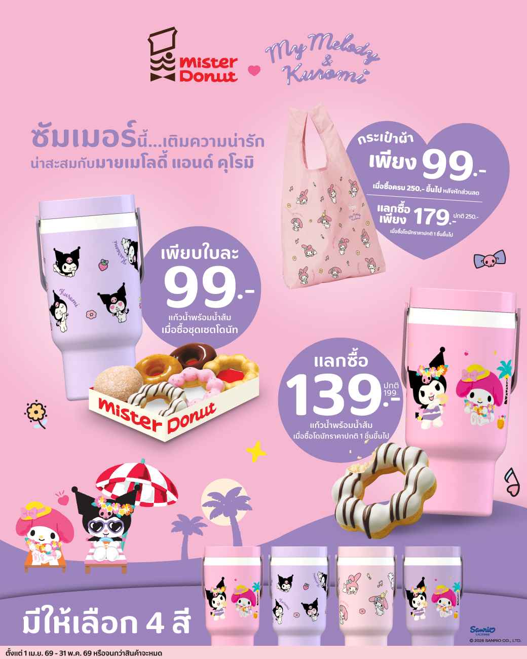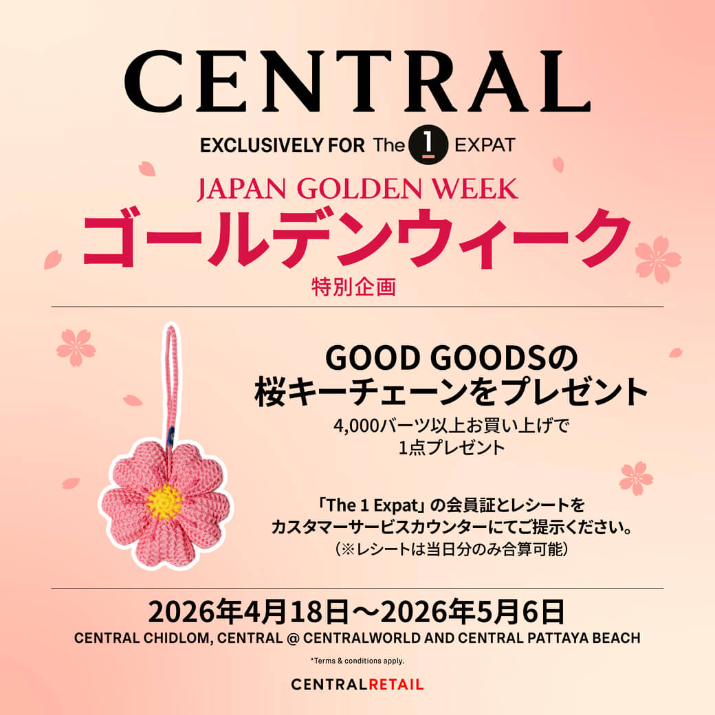 おでかけ・買物カレンダー ※内容は予告なく変更される場合があります PICK UP! ミミヨリ 4/25(土)〜 ことびあクリニックがシラチャにも開院 オンライン診療と薬の配送もしてくれることびあクリニックが、4月25日にシラチャのハーモニックレジデンスに開院しました。チョンブリ地域で発熱や腹痛など体調不良のときはまずオンライン診療でお問い合わせを。 場所 ハーモニックレジデンス203号室 WEB https://www.wisebk.com/cotovia_interview/ LINE https://line.me/R/ti/p/@778djxry PICK UP! 買物 販売中 東京メガネに「メニケアプラス」が再入荷! ハードのコンタクトを使用している方に人気のメニケアプラスが東京メガネに再入荷しました。オールインワンタイプの多機能レンズケアなので、 洗浄・消毒・タンパク除去・すすぎ・保存まで、これ1本で毎日のレンズケアが手軽になります。 場所 Sukhumvit Soi 33/1 WEB https://www.wisebk.com/life/tokyo_megane/?pr=1 PICK UP! 買物 4月18日(土) ~ 5月6日(水) セントラルにて4000B以上お買い上げでキーチェーンをプレゼント! The 1 Expat会員様限定特典:日本のゴールデンウィークを祝して! 4,000バーツ以上のご購入レシート提示で「Sakura GOOD GOODS キーホルダー」を プレゼント! FB CentralwOrld 場所 セントラル@セントラルワールド、チットロム、セントラル・パタヤビーチ(カスタマーサービスにて受付) WEB https://mkt.central.co.th/T1EXPJPNGW26 PICK UP! ミミヨリ 〜4月末日まで 隠れ家で4月のお得なプロモーション 月代わりでお得なプロモーションを展開する隠れ家「離れ」。4月はLINEの新規登録&来店者全員1ドリンクオーダーで4月中にいつでも使える「目の前で焼く!兵庫県播磨灘産の焼き牡蠣10個」無料クーポンをプレゼント配信! 場所 スクンビット・ソイ 55 (隠れ家 離れ) WEB https://www.wisebk.com/shop/271654/?pr=1 PICK UP! ミミヨリ 4月中旬〜末日 「鮨凛」4月のおすすめメニュー 新鮮な日本産海の幸を使った料理が人気の「鮨凛」。4月のおすすめメニューは静岡県駿河湾産の「さくら海老」。刺身や寿司、かき揚げ、出し巻きなど、旬の香りと甘みを活かした多彩なメニューが揃います。日本の春の味覚を贅沢にご堪能ください。 場所 Sukhumvit Soi 31(RSU Tower 4階) WEB https://www.wisebk.com/shop/209180/?pr=1 PICK UP! ミミヨリ 〜5/6(水) UTMy 筑波大学マレーシア校 2026年9月入学 出願受付中 日本の大学で初!海外で学び日本の学位を取得できる筑波大学マレーシア校が出願受付中。国際社会で活躍する課題解決型人材を育成します。4月にはウェビナーも開催。 FB utmy.pr 場所 マレーシア(クアラルンプール) WEB https://www.utmy.edu.my/ セミナー https://www.utmy.edu.my/news/detail/id=3580 PICK UP! ミミヨリ 〜4月末 DYM Clinic 300B引きクーポンプレゼント DYMクリニックにてワクチンを接種された方に次回ご利用いただける【ワクチン300THB引きクーポン】をプレゼント中。4月末までの期間で接種した方が対象です。LINEから日本語で気軽に問い合わせが可能です。 場所 プロンポン33/1院、トンロー49院 電話 +66(0)2-107-1039 WEB https://lin.ee/7ZnZNGo LINE @dymclinic PICK UP! ステージ 5/23(土) KING GNU CEN+RAL TOUR 2026 IN BANGKOK 日本の4人組バンド、King Gnuのバンコク公演が開催。独自のサウンドと圧倒的なライブで魅了する彼らのステージを、最新スポットのワン・バンコクで体感しよう。 場所 One Bangkok Forum(One Bangkok) 時間 18:00〜 WEB https://www.thaiticketmajor.com/concert/king-gnu-cen-ral-tour-2026-in-bangkok.html PICK UP! ミミヨリ 〜6/30(火) カップル検診プログラムキャンペーン 日本語対応可能な不妊治療専門クリニック「Safe Fertility」ではWiSE読者限定キャンペーンを実施中。カップルを対象にした検診プログラムを2,000B割引で受けることができます。事前予約はQRから。 WEB www.safefertilitygroup.com/en/home LINE https://line.me/R/ti/p/@395rhwlg?oat_content=url 買物 ©MisterDonutThailand 〜5/31(日) Mister Donut:My Melody & Kuromi ミスタードーナツとサンリオの「マイメロディ&クロミ」がコラボ。ドーナツセット購入等でキャラクター入りタンブラーやエコバッグも購入できるキャンペーン。 FB MisterDonutThailand 場所 Mister Donut各店舗 イベント ©PetExpoClub 4/30(木)〜5/3(日) Pet Expo Thailand 2026 タイ最大級のペットイベント。フードやペット用品が特別価格で並ぶほか、ペットの健康診断や競技会も開催されます。愛犬や愛猫と一緒に、最新のケア製品や可愛いグッズを探しに出かけてみては。 FB PetExpoClub 場所 QSNCC Hall 5〜8 時間 平日 10:00〜20:00、土日祝 9:30〜20:00 イベント ©ifstoreART 5/1(金)〜5/3(日) IF MARKET #7 MBKセンターで開催されるアート&デザインマーケット。若手アーティストによる個性的な雑貨やアートトイ、アパレルが揃います。ここだけでしか手に入らないクリエイティブな逸品を探す、刺激的な週末を楽しめます。 FB ifstoreART 場所 MBKセンター 7階 時間 10:00〜20:00 買物 ©kfcth 〜5/27(水) KFC:KITKAT Overload 人気のキットカットがKFCのスイーツと合体!サクサク食感とチョコの濃厚さが楽しめるドリンクやエッグタルトが登場。期間限定の贅沢なトッピングで、いつものメニューがさらにリッチな味わいに進化