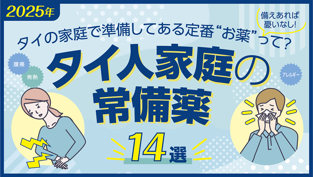 2025.10.2 タイのお土産、薬局、病院、食品、部屋探し、旅行、交通、教育、ビザ、免許、資産運用に至るまで、タイ生活に必要な情報を徹底取材するシリーズです! タイ生活に役立つ知識を動画で聞き流し! NEW 12月11日 【2026年最新版!】飲料水・浄水器・ウォーターサーバー知っておくべきタイ・バンコクの水事情 料理、洗濯、お風呂など毎日の生活に欠かせない「水」。しかしタイの水事情は日本と大… 11月26日 タイ・バンコクの空港2026年最新事情 東南アジア最大級のスワンナプーム国際空港や、格安航空会社(LCC)の発着空港として利用されているドンムアン空港といったバンコク近郊の空港を徹底分析! 11月23日 定番!喜ばれる!タイの名品&ご当地みやげ 定番!喜ばれる!タイの名品&ご当地みやげ 11月4日 2025〜26最新版!タイ国内での引越し必要な「手続き・基本・コツ・段取」を徹底解説! タイで賃貸住宅を借りる時は、「1年契約」「家具や家電が揃ってる」「礼金・保証人無… 11月3日 日本人がタイで働くための転職活動&仕事探し2025【東南アジア・海外転職】 「タイで働きたいけど、どうやって仕事を見つけたらいいの?」と悩む人は多いはず。そ… 10月17日 2025〜2026年!年末年始に行きたいタイ近郊の海外&タイ国内の旅行先 2025年の年末年始もまもなく到来!今年の年末年始はどこへ旅行に行こうかと計画を… 10月10日 タイ・バンコクのパソコン修理・購入事情2025年版 仕事や趣味に欠かせないアイテムの1つと言っても過言ではないパソコン。日本から愛用… 10月2日 タイ・バンコクのスーパー・ドラッグストア・ECサイトで買える!日本ブランドの生活必需品【2025年最新版!】 タイ・バンコクで買える日本ブランドの日用品・生活必需品衛生用品、赤ちゃん&子ども… 9月11日 2025年版!タイ・バンコクのメガネ(眼鏡)&コンタクトレンズ事情 メガネやコンタクトレンズを愛用している方なら、タイでの購入方法やメガネの作り方に… 8月26日 駐在員なら絶対に知っておきたいISOの基礎知識 ISOとは、スイスのジュネーブに本拠地がある国際標準化機構(Internatio… 8月21日 バンコク・オフィスビル・マップ タイの首都「バンコク」は国内外の企業が集まるビジネス都市。東南アジアのビジネスハ… 8月14日 2025年版 タイのタクシー&配車アプリまとめ! タイでは日本よりも安い運賃で気軽にタクシーを利用できますが、日本とは文化が違う部… 8月11日 タイ・バンコク生活に必須!Grabアプリの使い方! タイでは、路上でタクシーを拾うだけでなく、配車アプリを使って車を手配するのが一般… 8月10日 女性が安心して乗れるタクシーGrabCar for Ladies タイでタクシーを利用する際に「女性ひとりで乗るのはちょっと不安…」「タイ語が話せ… 8月8日 タイ・バンコクのタクシー事情料金・乗り方・注意点・配車アプリ バンコクで必要不可欠な移動手段。都内には法人経営と個人経営のタクシーが数多く走っており、日本と比べて格安で乗れます。 7月31日 2025年版 タイの鉄道事情 電車でGO! ここ数年で、大きな変化を遂げているタイの鉄道。特にバンコク都内を走る近郊エリアと… 7月11日 在タイはチャンス!賢い資産運用はコレ タイに住む日本人なら知っておきたい“お金を増やす”ための知識タイ在住でもできる資… 7月7日 初心者でも始めやすい!資産運用のプロに聞いた、タイで資産運用を始めるためのQ&A 駐在としてタイに来ることになった方や、タイに移住しようと考えている方など、せっか… 7月3日 タイで歯科治療を受ける前に知っておきたいこと!タイ・バンコクの歯医者さん2025年版 歯の検診や治療をどうしていますか?日本にいる場合は歯科検診や虫歯治療などで歯科医… 6月12日 症状別で分かりやすい!タイの市販薬100選 タイで買える薬を徹底解説! 医療一覧はこちら 7月3日 タイで歯科治療を受ける前に知っておきたいこと!タイ・バンコクの歯医者さん2025年版 歯の検診や治療をどうしていますか?日本にいる場合は歯科検診や虫歯治療などで歯科医… 6月12日 症状別で分かりやすい!タイの市販薬100選 タイで買える薬を徹底解説! 6月6日 日本語対応で安心の病院受診の流れ、保険利用など 近隣諸国の中でも高い医療水準を誇り、日本や欧米に引けを取らない世界トップレベルの… 2月3日 2025年3月から適用! 新医療保険制度「COPAYMENT(コーペイメント)」 記事提供:アリアンツ アユタヤ保険日本ではあまり馴染みのない「COPAYMENT… 4月9日 タイ・バンコクの危険&詐欺2024 日本人に人気のタイは「比較的治安もよく、安全に暮らせる国」といわれています。特に… 6月14日 【タイ・バンコク】マルシェトンロー内の「TOPS」で買える薬 2025年版 日本人が多く住むトンローの中心にあるコミュニティモール「マルシェ トンロー(Ma… 5月12日 【タイ・バンコク】コンビニ(セブンイレブン)で買える薬 2025年版 夜、もう寝ようかなとしている時間に「なんだかお腹が痛いぞ」と、引き出しの中を探し… 4月17日 在タイ日本人の医療保険必見!5つの基礎知識 来タイした皆さんへ。