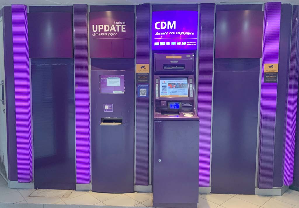 タイのATMは日本のATMと異なり、現金の預け入れや通帳記帳ができません。現金の預け入れができる機械は「CDM」と表記されている機械で、銀行や一部のショッピングセンター内に設置されています。はじめて利用する場合は、銀行に併設された機械か銀行窓口を利用するのがおすすめです。
