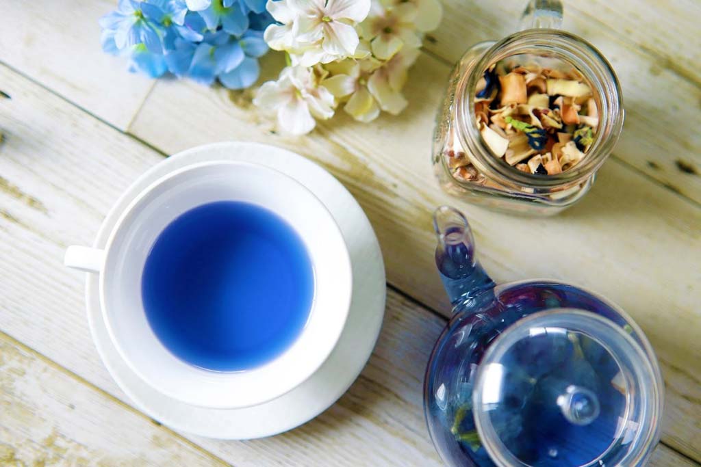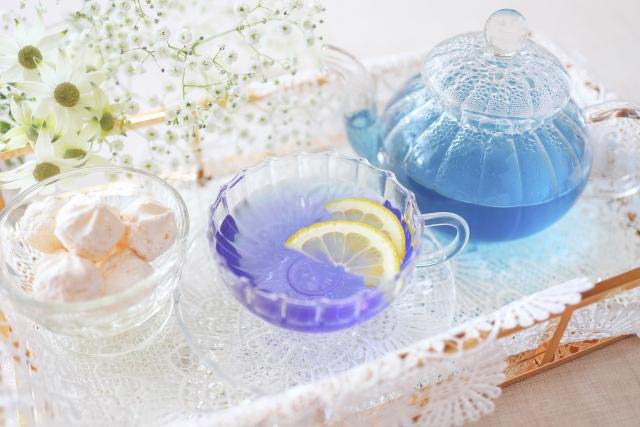 バタフライピー自体は無味無臭。レモングラスなどがブレンドされた茶葉を選ぶか、砂糖、はちみつ、レモンやライムなどの柑橘系果汁、カルピスなどで味をつけると美味しさが増します。