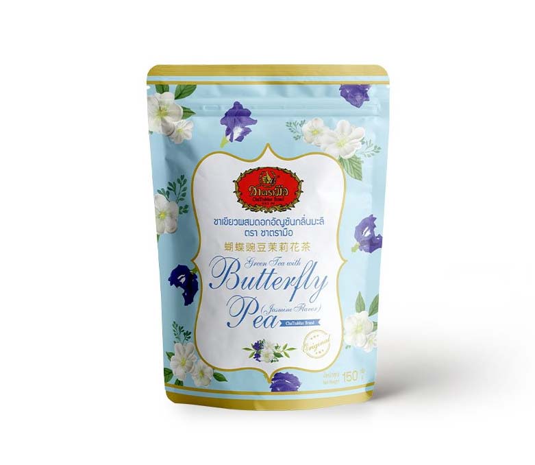 「Cha Tra Mue(チャ・トラ・ムー)」からもバタフライピーを使った茶葉が登場。ジャスミンティーベースのルースリーフティー(150g/175B)は同ブランドのベストセラー商品です。