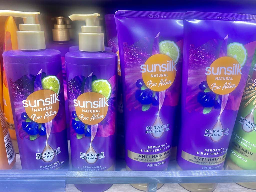タイの人気シャンプーブランド「sunsilk(サンシルク)」シリーズのベルガモット&バタフライピー。モリンガオイルが髪に栄養を与え、抜け毛を予防します。香りが強く泡立ちも良いため、愛用する日本人も多いブランド。目安価格はスーパーで180B前後。