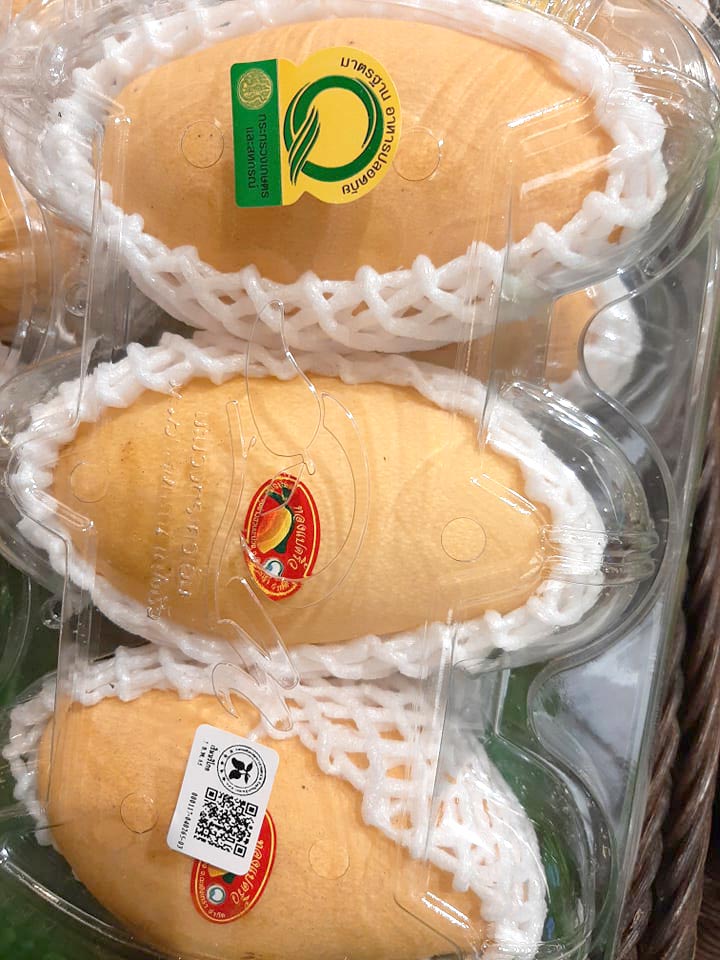 東部チャチューンサオ県にあるマンゴー生産組合が生産するマンゴー。同県の名産ナムドクマイ種をはじめ、キオサワーイ種など様々な品種のマンゴーを栽培。パッケージに貼ってあるQRコードを読み込むと、生産地・収穫日などの情報が分かります。「Q」マーク認証取得済み。