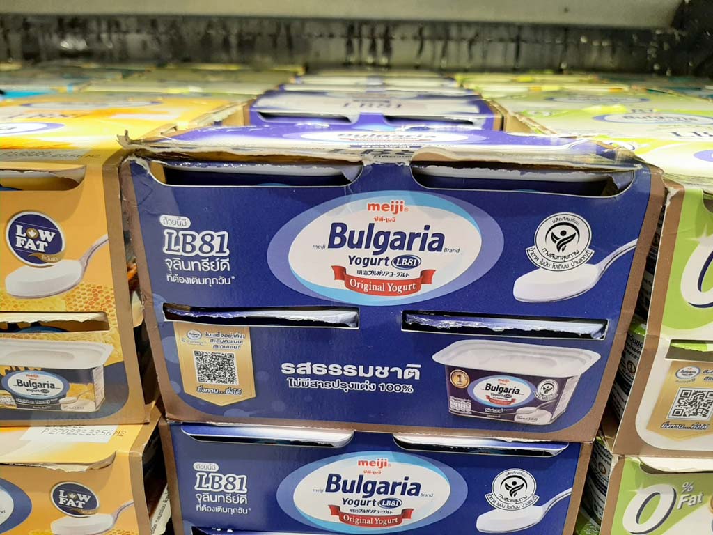 明治乳業とCPグループの合併会社「CP-meiji」からヨーグルトを生産・販売しています。プレーンヨーグルトよりも果実入りのフレーバーヨーグルトが多く、パイナップル味が人気。