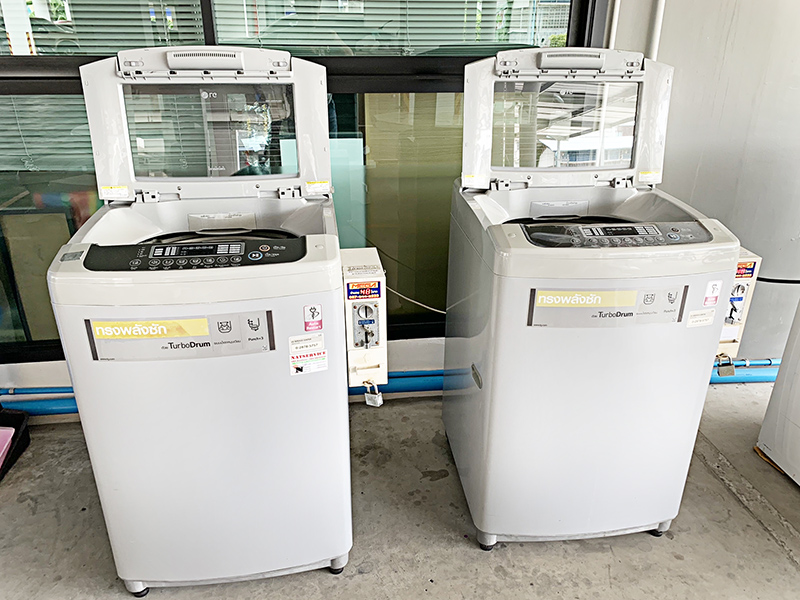 タイの洗濯機は「ドラム式洗濯機」、もしくは「縦型式洗濯機」が主流です。日本人が居住するコンドミニアムやアパートにも洗濯機が備え付いている場合がほとんどで、室内もしくはベランダに設置されています。すすぎ洗いや脱水といった基本的な機能は備わっており、最新の洗濯機だと乾燥機能がついているものもあるようです。
