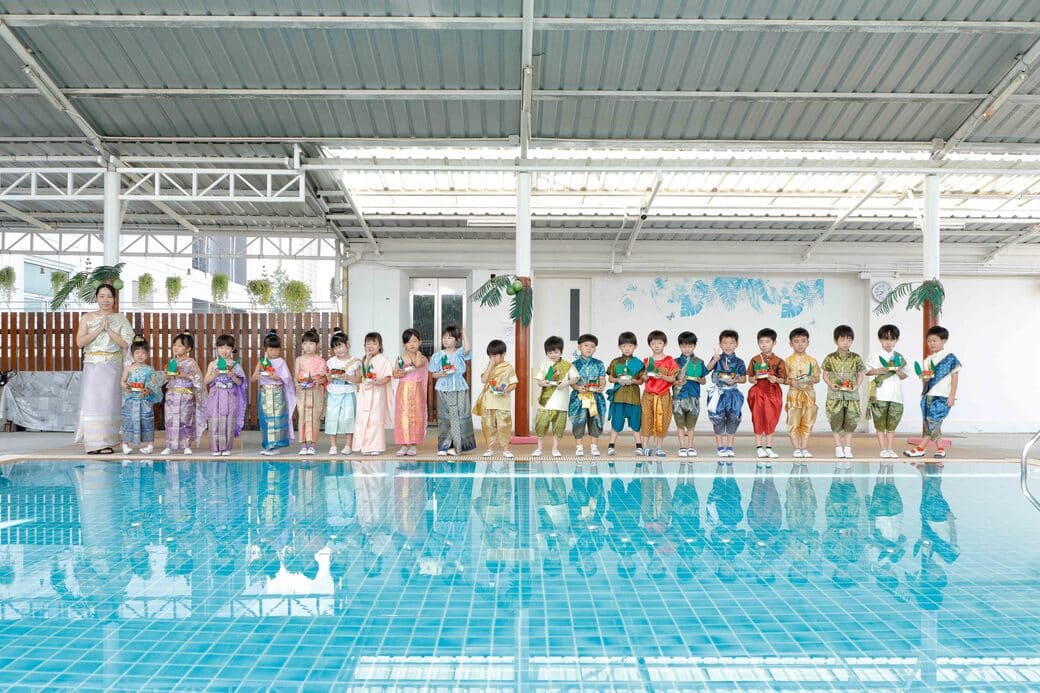 広々とした園庭やアスレチック遊具、屋上広場や温水プールなど充実した設備が魅力のニューバンビーノ幼稚園。日常保育に「英語」や「タイ語」を取り入れ、外国語に慣れ親しむ環境作りをしています。