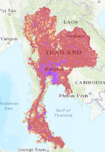 くまなくタイ全土をカバーしているといえます。3G、4G、5Gを含めると最もカバレッジエリアが広いのはAIS。そして5Gに関しては都心部に集中している傾向があると言えるでしょう。