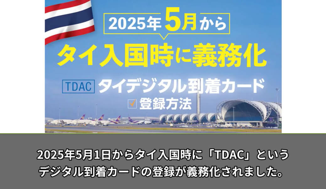 2025年5月1日より、タイ国籍者を除くすべての渡航者を対象にタイデジタル到着カード「TDAC(Thailand Digital Arrival Card)」の登録が義務化されます。