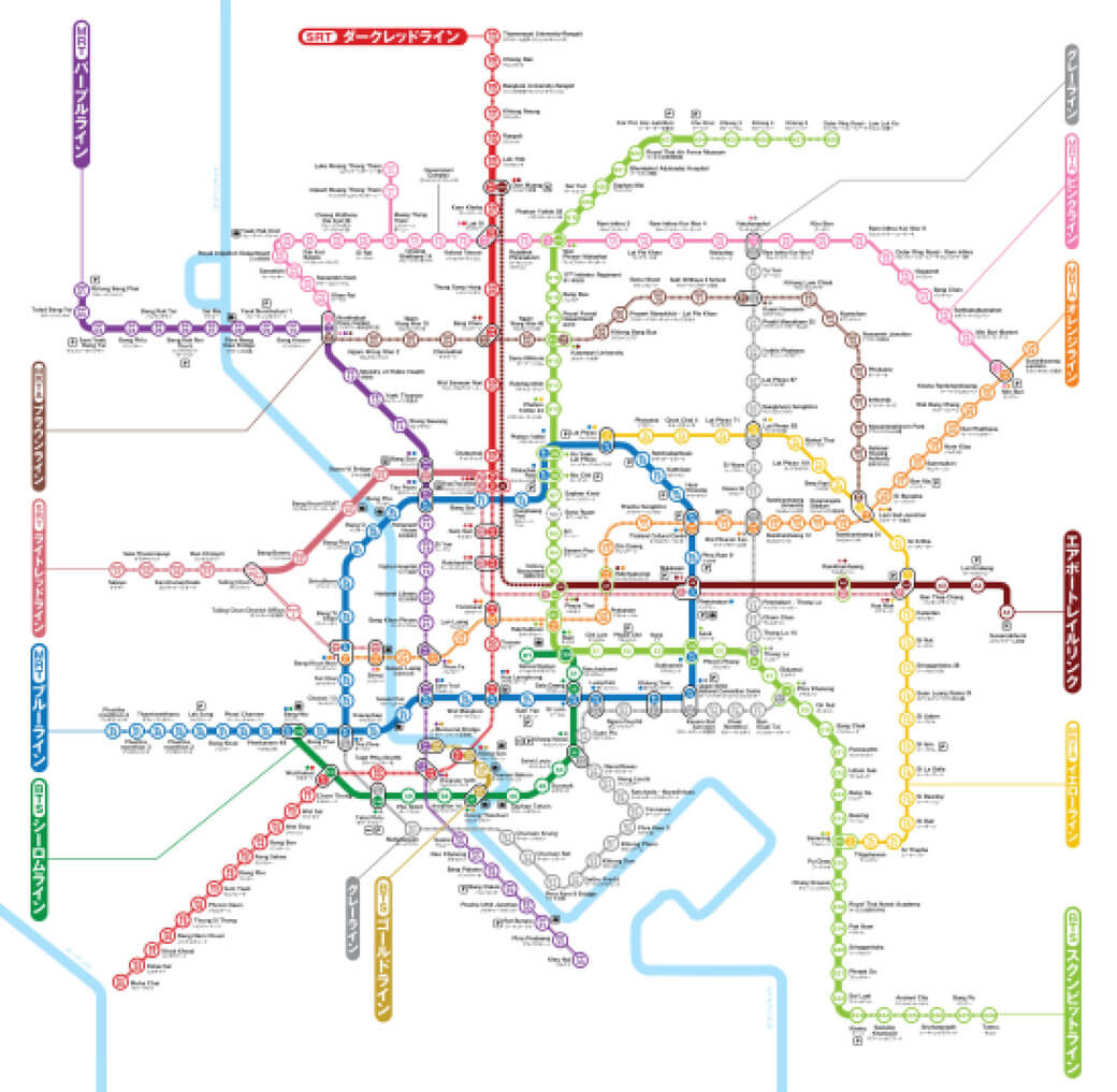 ノンタブリー政府合同庁舎駅でMRTパープルラインと、ラックシー駅ではSRTレッドライン、ワットプラシーマハタート駅でBTSスクンビットラインに接続。また、2025年6月にはピンクラインの延伸区間(ムアントーンターニー駅〜ムアントーンターニー湖駅)が開業となったことで、ムアントーンターニーのインパクト国際展示場へのアクセスも至便に。今後は現在建設中のオレンジラインと接続する予定です。