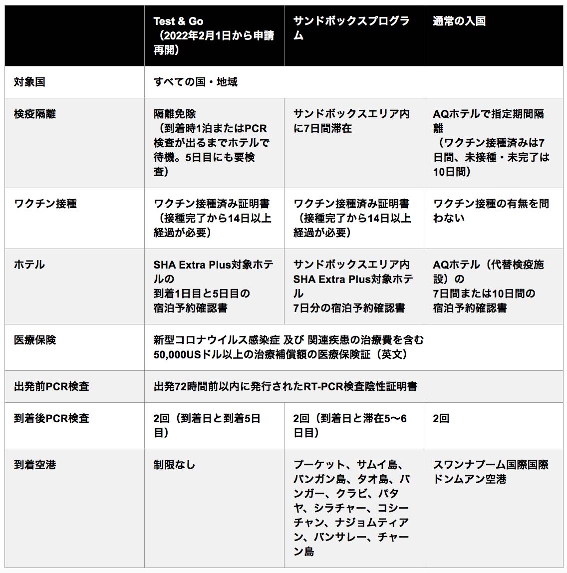 - サンドボックス指定地域(現時点では17の地域)への入国者は、上記の条件に加え健康安全基準(SHA+)、またはAQホテル(政府指定隔離施設ホテル)7泊分の予約確認書が必要