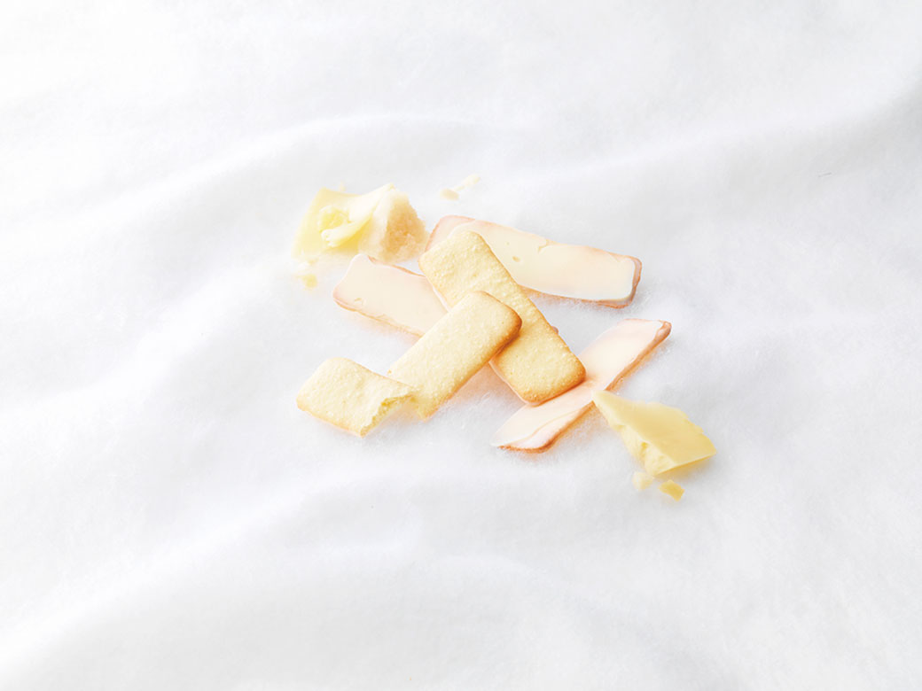 甘さとの塩味の絶妙なバランスがクセになる美味しさ。定番のチョコレート味のほか、チーズの風味香るフロマージュブラン味を用意