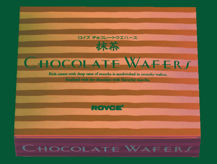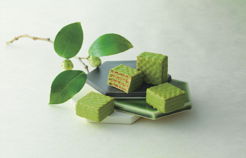 4層に重ねたウエハースに抹茶クリームをサンド。さらに抹茶をブレンドしたホワイトチョコでコーティング