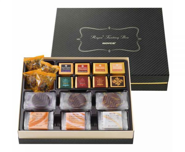 チョコレートのアソートボックス。味も種類もさまざまでロイズのチョコレートを贅沢に堪能できます