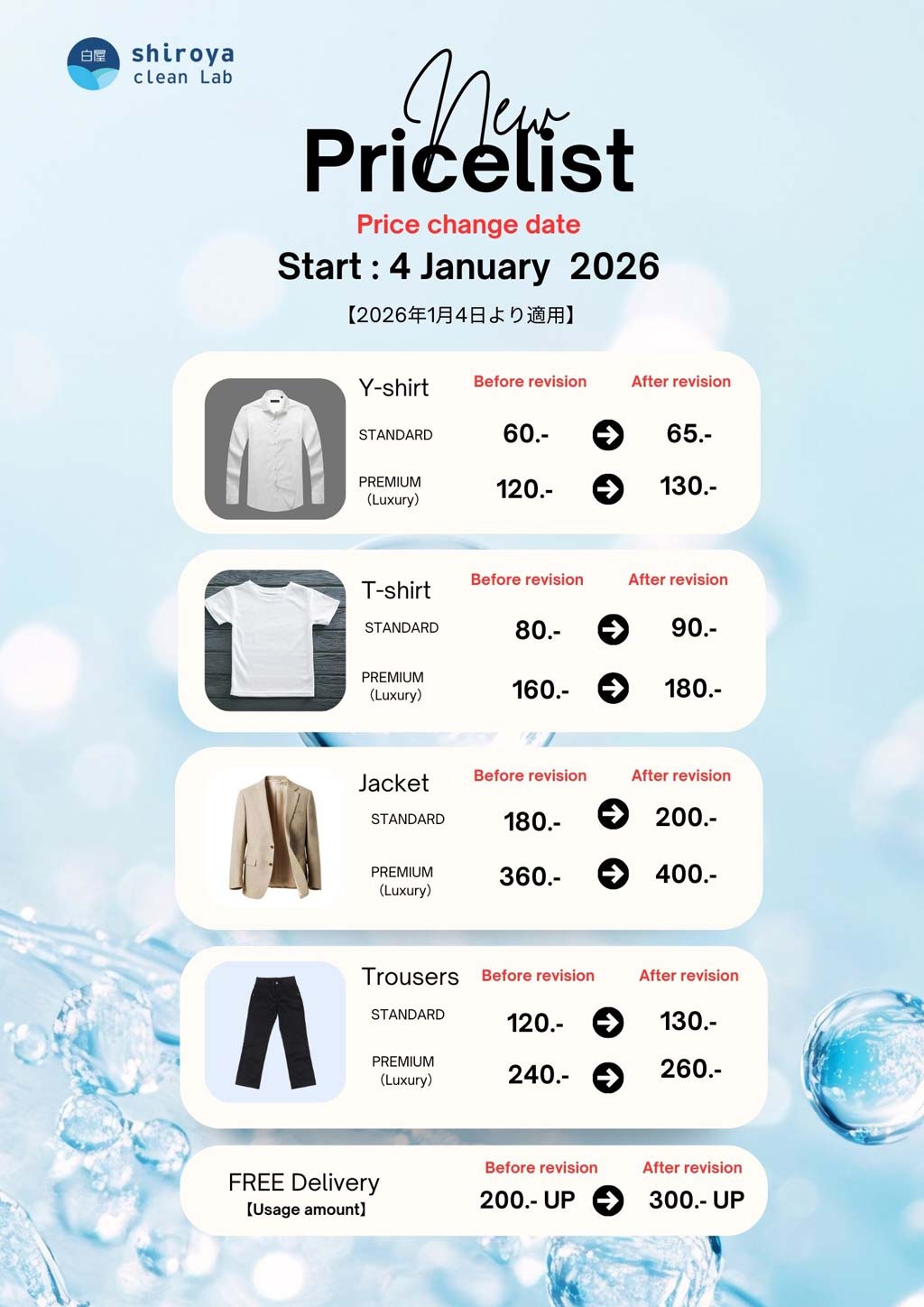 2022年6月15日、新たに宅配クリーニング『白屋』(shiroya clean Lab)としてグランドオープン。“便利、快適、清潔、安心な暮らしの提供をバンコクでも!”という新コンセプトを打ち出し、時代のニーズを捉えた宅配専門クリーニング店としてサービス内容も全面リニューアルしています。
