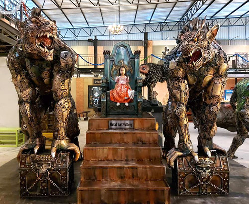 歯車やチェーンといったスクラップ部品を集め、“メタルアート”として新たな息吹を吹き込んだアートギャラリー。