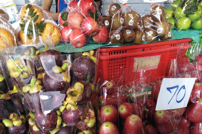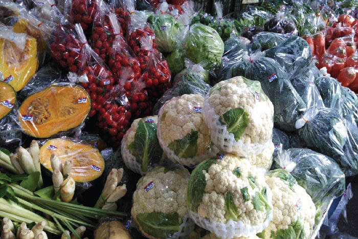 周辺エリアの中でも最も歴史があり、場内には食品の安全性を示すISO認証の野菜や果物、近海産の海の幸が所狭しと並びます。